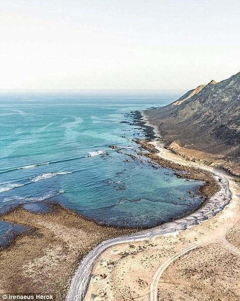 Giáp với UAE là Oman, quốc gia nằm ở Đông Nam bán đảo Ả Rập. Hình ảnh trên không tuyệt đẹp với nước biển màu xanh ngọc lam và dải cát trắng này được chụp ở một bãi biển hoang sơ ở Oman.