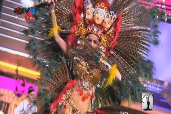 2h17: HHHV 2012 trình diễn bộ áo tắm trị giá triệu đô trên sân khấu của cuộc thi. Bộ áo tắm đắt nhất thế giới này được thiết kế với những viên hồng ngọc và kim cương đính trên thân áo. Bộ áo tắm này được bảo vệ bởi các nghệ sĩ 24/7.Tân HHHV 2013 cũng sẽ được mặc bộ áo tắm này sau khi đêm thi kết thúc.