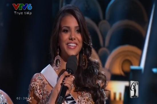 2h25: Top 5 thí sinh của Miss Universe 2013 gồm có: Ecuador, Brazil, Venezuela, Tây Ban Nha, Philippines.