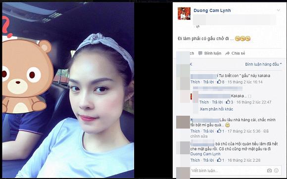 Trước đó, nữ diễn viên cũng đã hân hoan khoe niềm vui được "gấu" chăm sóc trở đi làm. Tuy nhiên, khuôn mặt của "gấu" được cô nàng che chắn kỹ để giữ kín bí mật đời tư của mình. Vì vậy, nhiều nghi vấn được đặt ra cho mối quan hệ của Dương Cẩm Lynh và nhà sản xuất, liệu có đơn giản chỉ là công việc hay còn có gì khác ẩn chứa bên trong?