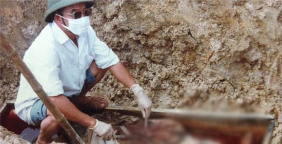 Đại tá Tiếp trong một lần tác nghiệp với tử thi đã được chôn cất.