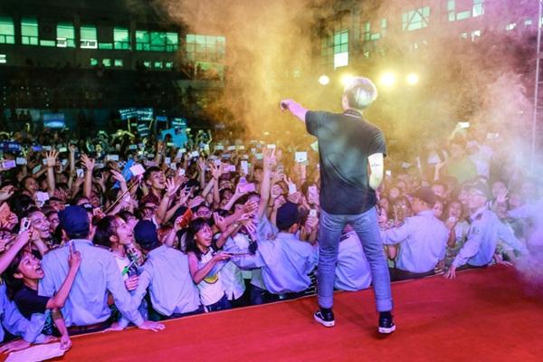 Tập trung rất sớm tại khu vực nhà thi đấu, các fan hò hét, kêu gào tên thần tượng. Vì lượng fan quá đông cùng với thời tiết nắng gắt nên chiếc cửa kính ra vào nhà thi đấu bị rơi vỡ trước sự cuồng nhiệt của người hâm mộ.