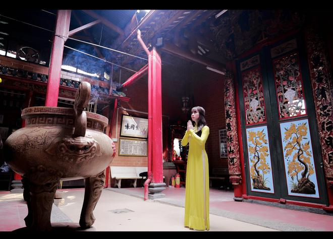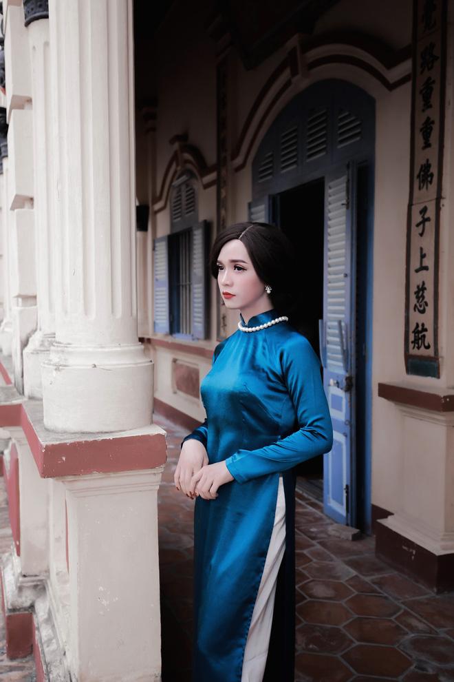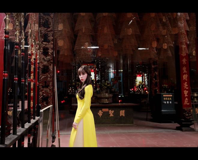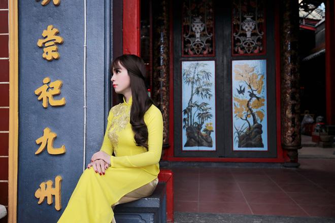 Một vài hình ảnh nữ tính, xinh xắn của Đoàn trong trang phục áo dài truyền thống: