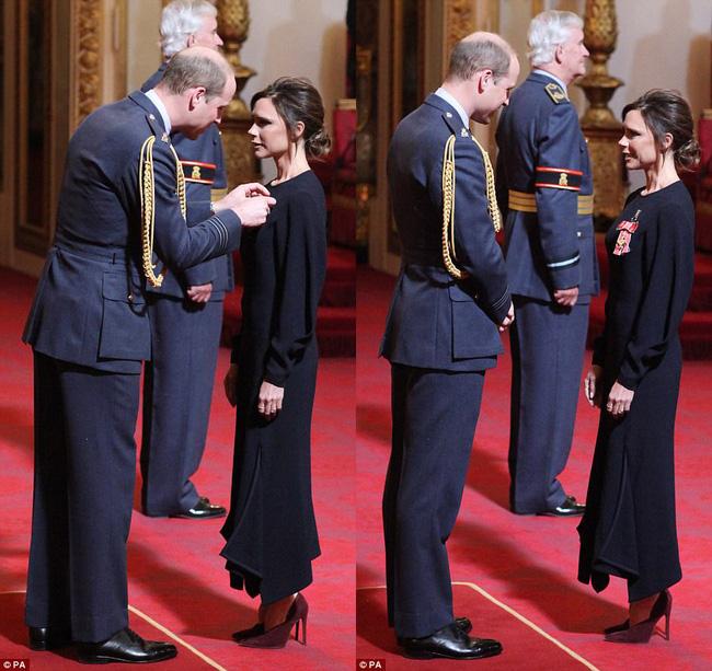 Chia sẻ cảm xúc khi nhận giải thưởng, Victoria Beckham vui mừng bộc bạch: “Tôi rất vinh hạnh khi được ở cung điện Buckingham ngày hôm nay. Tôi tự hào mình là một người Anh và vinh dự khi được nhận tước Sĩ quan đế chế Anh từ Hoàng tử William (Công tước xứ Cambridge).