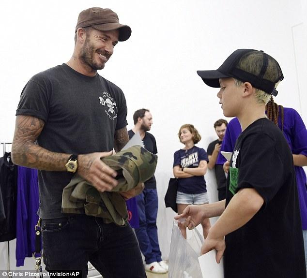 Hôm 19/8, David Beckham còn được trông thấy dẫn cậu con trai Cruz đến cửa hàng của Kanye West tại Los Angeles để mua sắm. Được biết, chỉ có 21 cửa hàng trên thế giới mở cửa vào cuối tuần này để bán dòng sản phẩm thời trang "The Life Of Pablo" của Kanye. Bỏ qua những tin đồn, cựu danh thủ xuất hiện vui vẻ khi mua sắm cùng con trai.