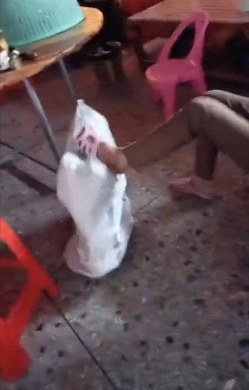 Những hình ảnh này được cho là quay vào ngày 14/4 vừa qua tại Quảng Đông (Trung Quốc). Hình ảnh từ clip cho thấy, trong khi bé gái bị nhét vào bao tải khóc lóc thảm thiết, vô cùng sợ hãi thì người bà liên tục đá vào túi còn người cô dùng gậy đánh bên ngoài.