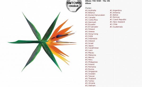 Còn trên trận địa quốc tế, album The War đã đứng đầu iTunes tại 41 quốc gia trên thế giới, phá vỡ kỷ lục của BTS trước đó với album WINGS.