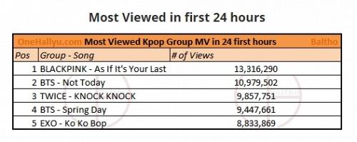 Top 5 MV có lượt xem cao nhất Kpop sau 24h tính đến thời điểm hiện tại.