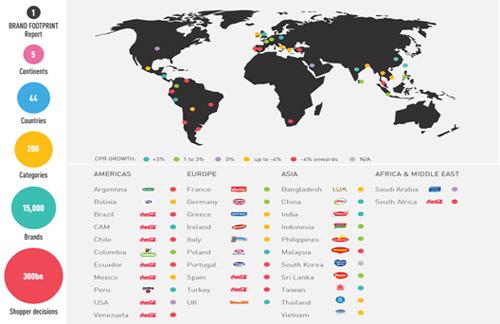 Kantar World Panel đã phát hành báo cáo Brand Footprint năm 2016 (Dấu Chân Thương Hiệu) - Bảng xếp hạng toàn cầu của những nhãn hàng tiêu dùng được chọn lựa nhiều nhất trên thế giới và của từng quốc gia ngày 24/5/2016. Đây là lần thứ 4 Kantar World Panel thực hiện báo cáo này kể từ lần đầu tiên vào năm 2013 thông qua các cuộc nghiên cứu sát sao toàn cầu đối với các nhãn hiệu nổi bật trong trong ngành FMCG, bao gồm đến 15.000 nhãn hiệu và 200 danh mục ở 44 nước trên 5 châu lục.