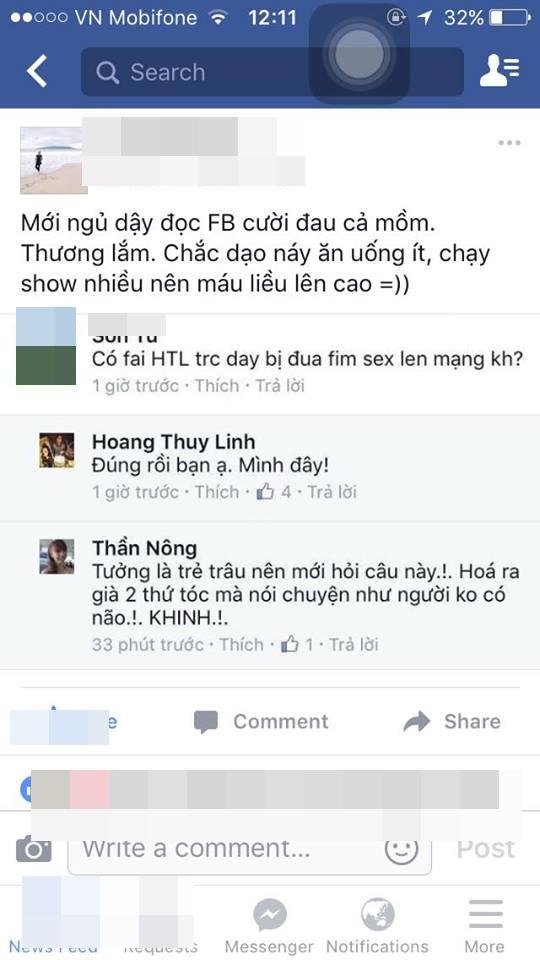 Là nữ ca sỹ trẻ hot trong làng nhạc Việt sở hữu lượng fans hùng hậu trong cả nước nên hình ảnh cùng dòng trạng thái của người bạn nói tới Hoàng Thùy Linh đã nhanh chóng thu hút sự quan tâm của mọi người. Ngoài vô số những lời khen ngợi dành cho nữ ca sỹ thì có bạn nhìn ảnh rồi đặt câu hỏi bất ngờ khiến nhiều người không khỏi ngỡ ngàng: Có phải Hoàng Thùy Linh trước đây bị đưa phim sex lên mạng không?.