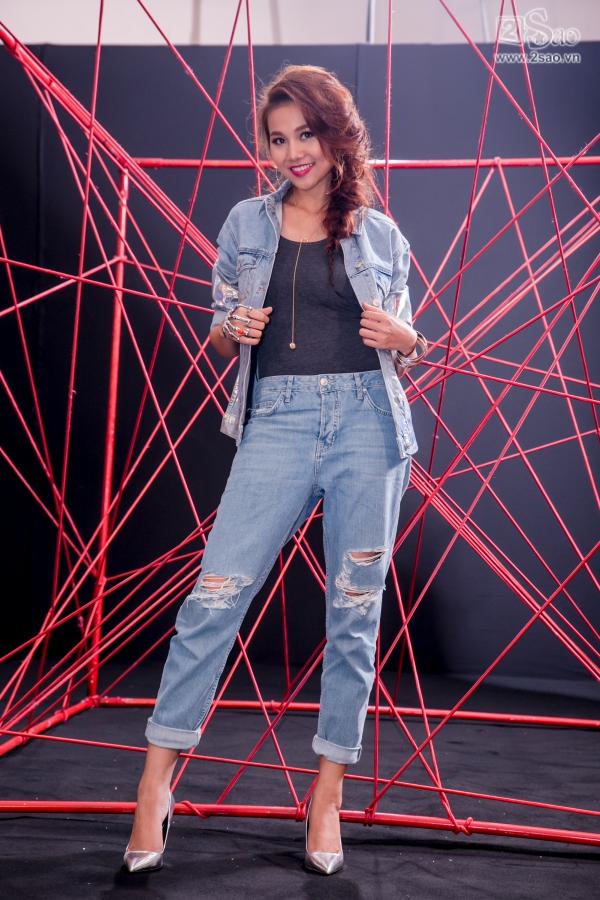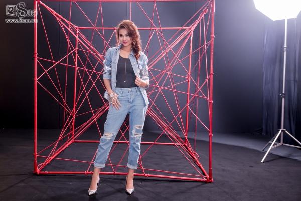 Thanh Hằng tạo dáng trước khi hướng dẫn thí sinh cách pose hình
