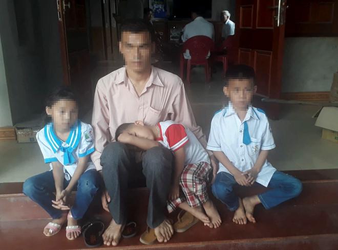 Anh Chuyên cùng 3 đứa con nhỏ. Ảnh: V.Đ.