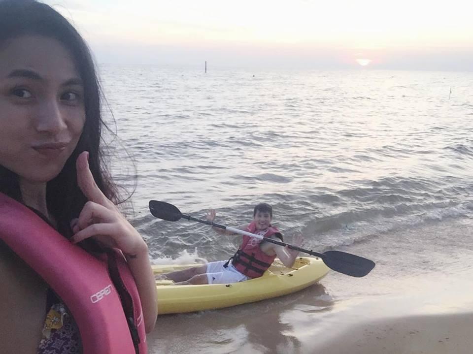 Để giải tỏa mệt mỏi trong công việc cuộc sống thì những chuyến du lịch cả gia đình hâm nóng tình yêu là lựa chọn tối ưu của Vinh - Tiên. Mới đây, vợ chồng Thủy Tiên đã tự thưởng cho mình kỳ nghỉ tại hòn đảo đẹp Phú Quốc của Việt Nam. Ngoài những lúc nghỉ ngơi ăn uống thư giãn, Công Vinh - Thủy Tiên đã dành thời gian khám phá trải nghiệm niềm vui với biển cả. Phấn khích với cảm giác mới lạ khi khám phá biển đảo quê hương, Thủy Tiên đã hân hoan khoe khoảnh khắc lưu niệm của hai vợ chồng với fans hâm mộ. Đính kèm với hình ảnh là dòng cảm xúc của nữ ca sỹ: "Chèo xuồng ra biển ngắm hoàng hôn.. Biển Phú Quốc đẹp bát ngát".