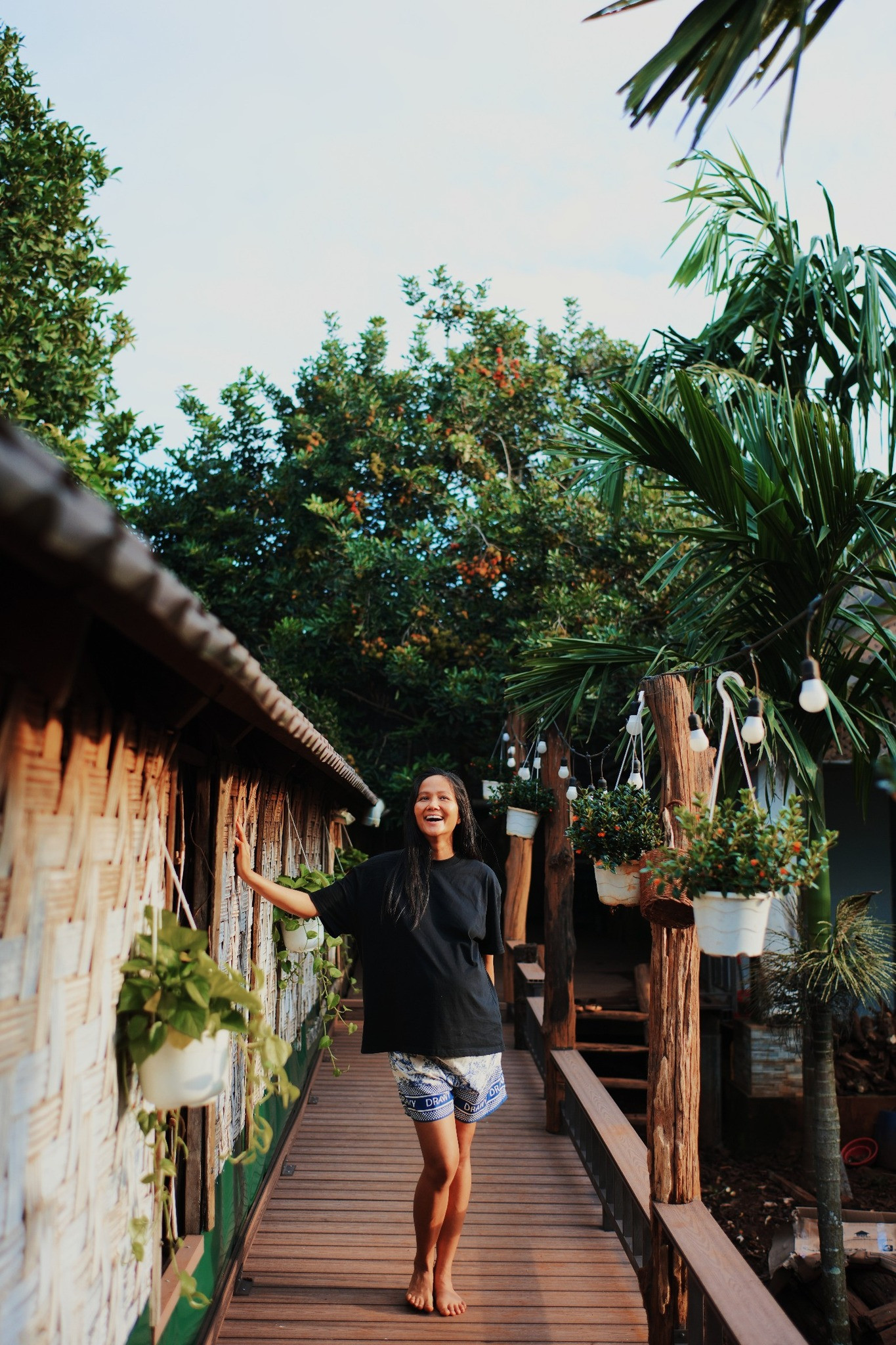 Trong hình, vợ chồng H'Hen Niê diện trang phục giản dị với áo phông, quần đùi. Hoa hậu hoàn vũ Việt Nam tự tin khoe mặt mộc ở những tháng cuối thai kì. Nhìn những hình ảnh của Hen nhiều người không nghĩ đây là một hoa hậu vì quá đỗi chân chất, bình dị, không phấn son, quần áo hàng hiệu như nhiều mỹ nhân đình đám khác.