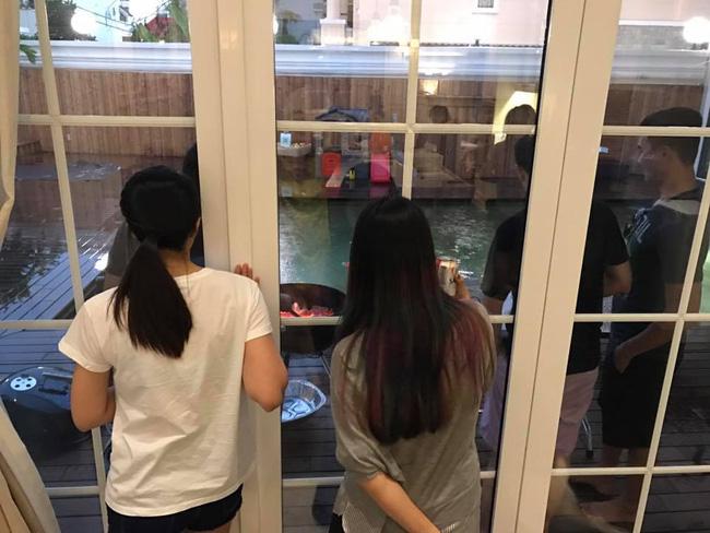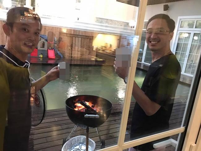 Người đẹp họ Tăng đứng nhìn chồng và những người bạn nướng thịt