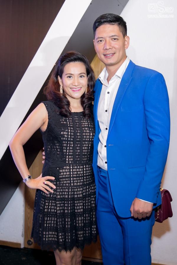 Bình Minh lịch lãm với vest xanh cobalt và vợ của anh sang trọng khi diện