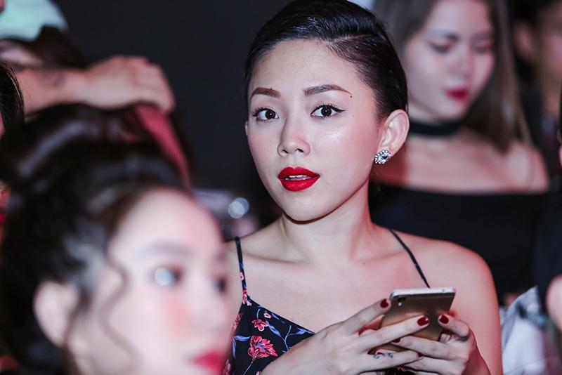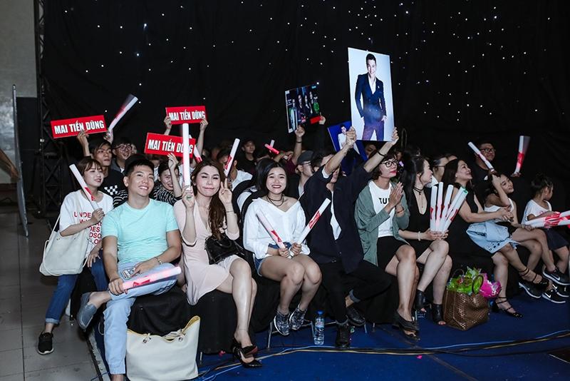 Không vội ra về sau khi đã giúp Mai Tiến Dũng chuẩn bị trang phục, Tóc Tiên chọn cho mình một chỗ ngồi trên khán đài. Dưới sức nóng bùng nổ của sân khấu, không chỉ Tóc Tiên mà cả FC của Mai Tiến Dũng cũng hào hứng cổ vũ cho phần thi đầy sắc màu âm thanh của anh trong suốt đêm diễn.