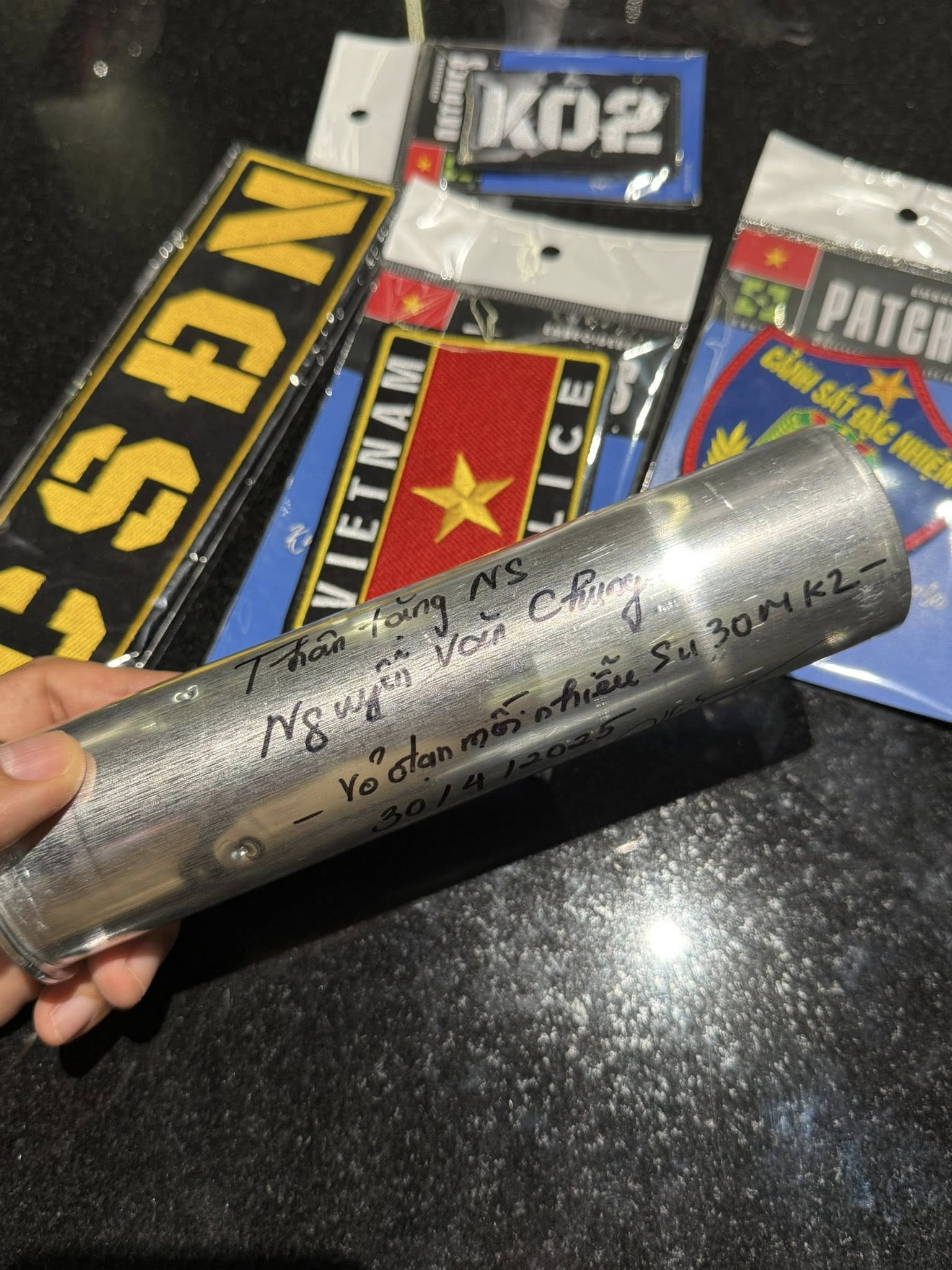 Trong đó, có 1 chiếc vỏ đạn trong số hàng trăm viên đạn mồi nhiễu được bắn trên bầu trời TPHCM sáng 30/4 do phi công lái 1 trong những chiếc tiêm kích Su-30MK2 gửi tặng.