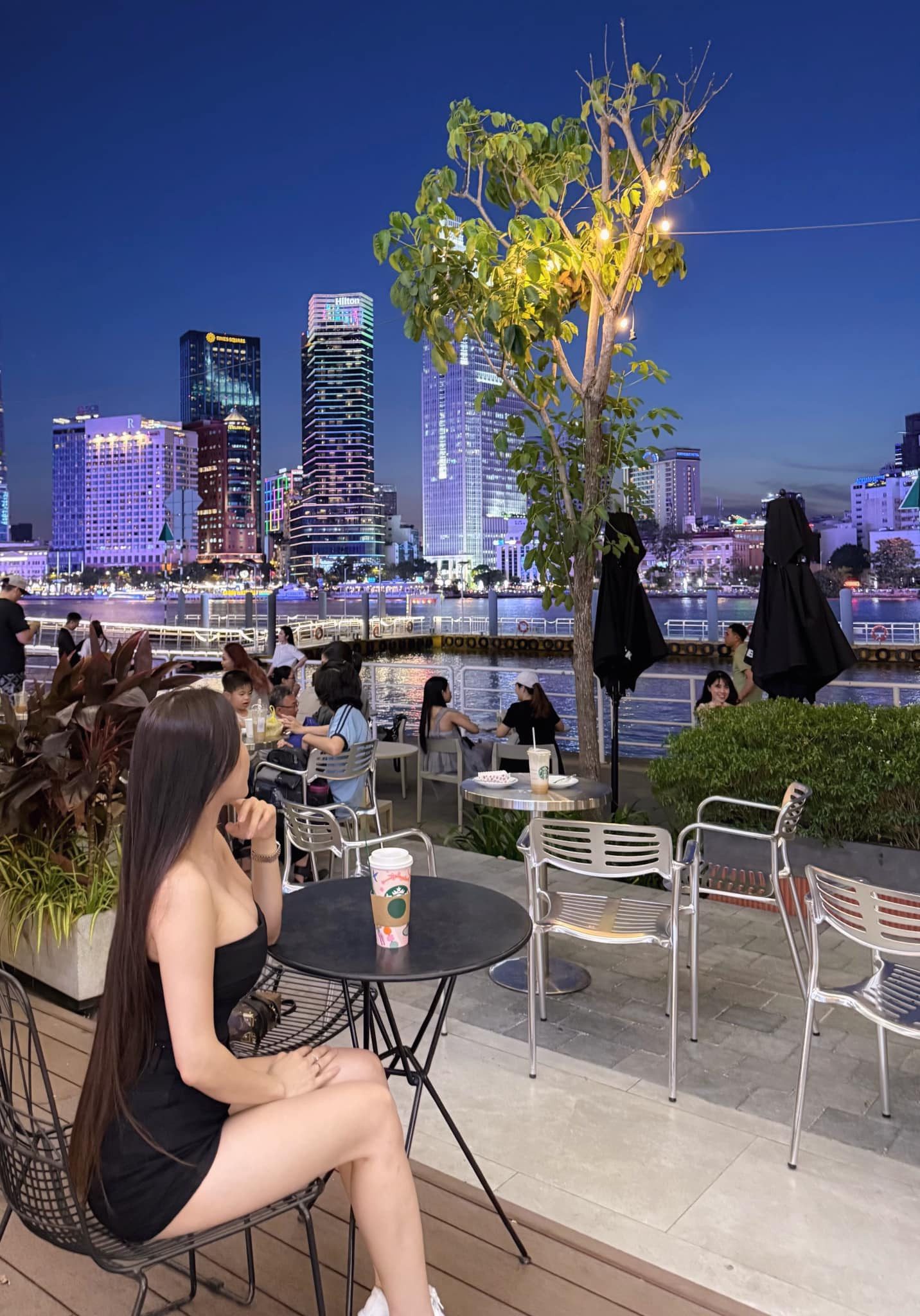 Tạo điểm nhấn cho tạo hình, Yến Xuân lựa chọn đôi giày thể thao trắng hiện đại, tạo sự thoải mái khi di chuyển. Vợ thủ môn Đặng Văn Lâm đeo vai chiếc túi vải đen đơn giản nhưng tiện lợi, phù hợp với phong cách thời trang tối giản. Sự kết hợp giữa trang phục và thần thái tự tin giúp nàng WAGs thêm phần nổi bật giữa không gian xanh mát của công viên.
