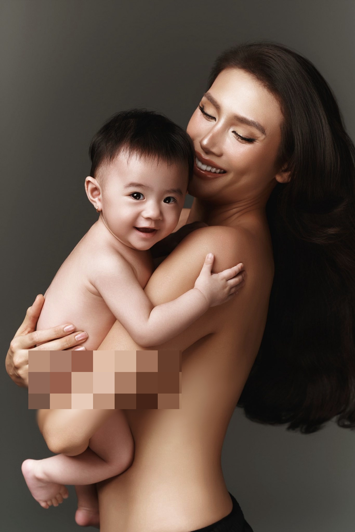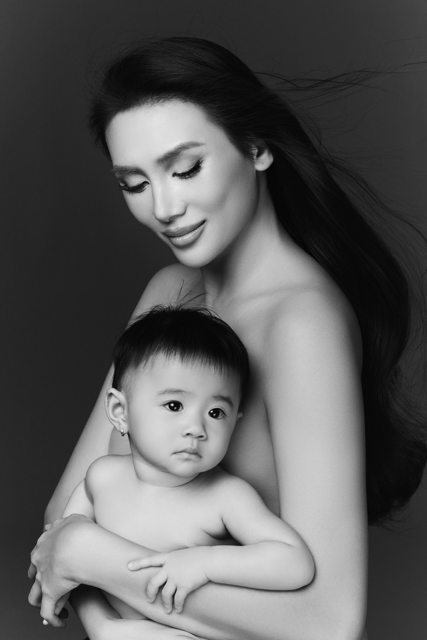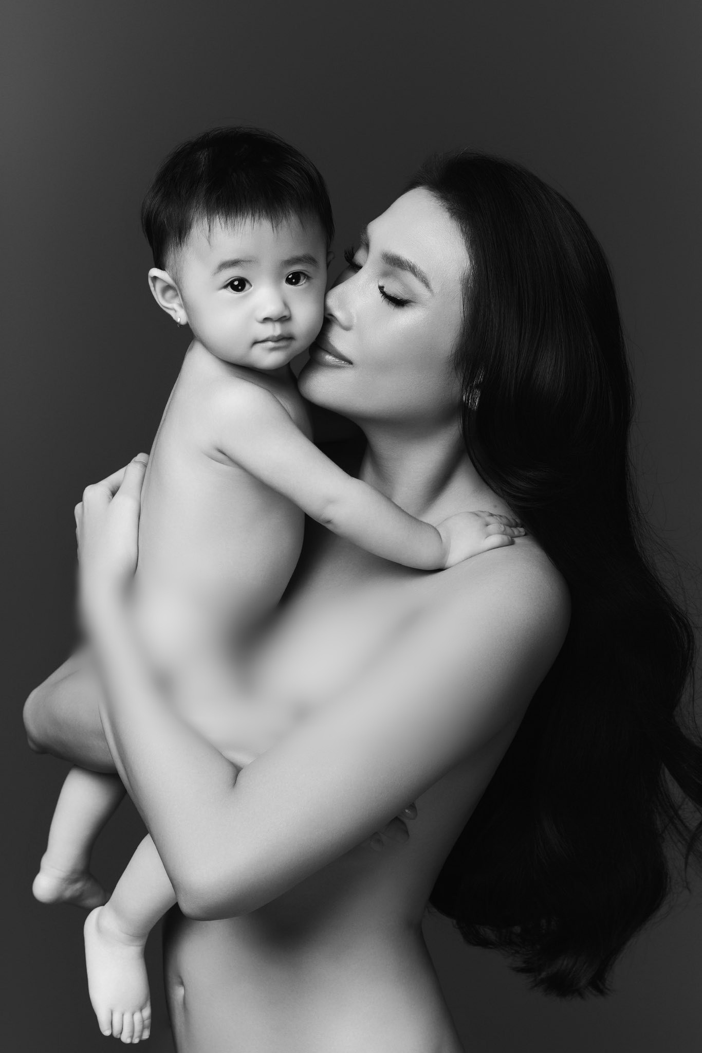 Lý giải về concept ảnh này, siêu mẫu chia sẻ thêm: "Chọn chia sẻ bộ ảnh này trong hình thái mộc mạc nhất, không áo quần, không tô vẽ, chỉ có “da kề da, tim kề tim”, để có thể ghi lại khoảnh khắc thuần khiết giữa mẹ & Nubi.