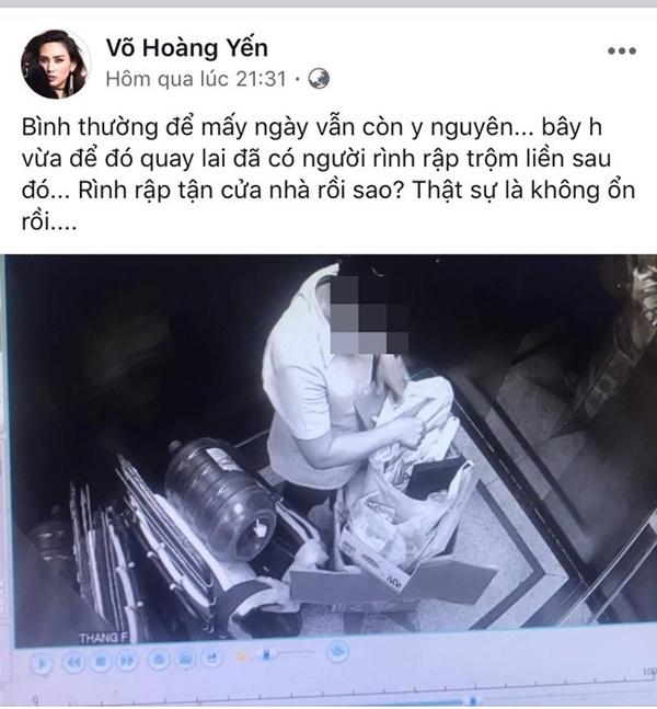 Trong đơn cầu cứu, Võ Hoàng Yến cũng viết rõ cô từng bị giang hồ kéo đến tận nơi làm việc, đồng thời từng bị lấy cắp đồ đạc trong nhà. Khi xem lại CCTV, cô phát hiện có nhiều người lạ mặt đứng xung quanh căn hộ. Không chịu nổi áp lực, siêu mẫu Võ Hoàng Yến bế tắc đến mức buộc phải hủy show diễn và liên tục sống trong lo sợ. Đã có lúc, cô phải nhập viện vì sức khỏe suy sụp.