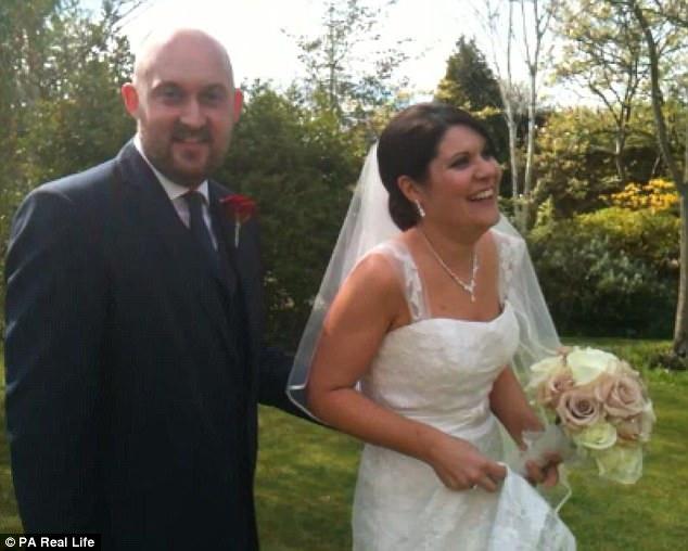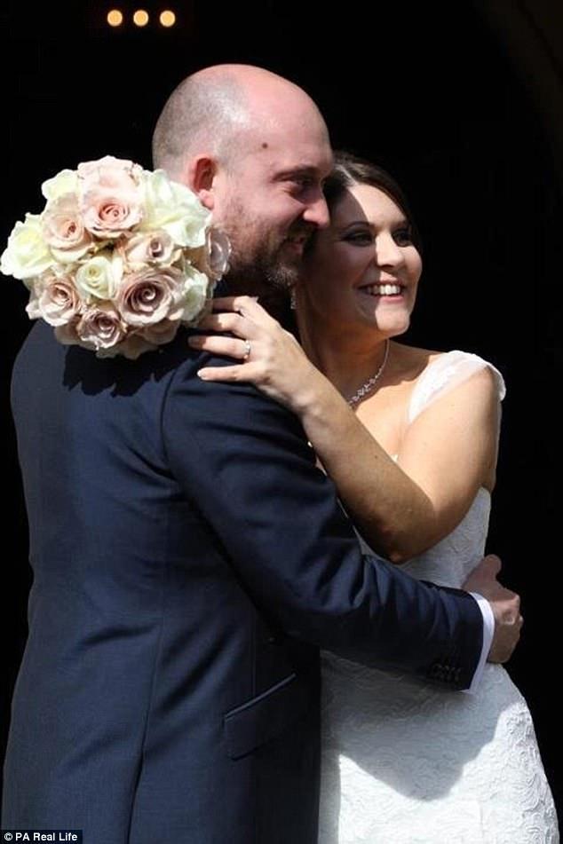 Vợ chồng chị Sally Hobson trong ngày cưới. (Ảnh: dailymail)