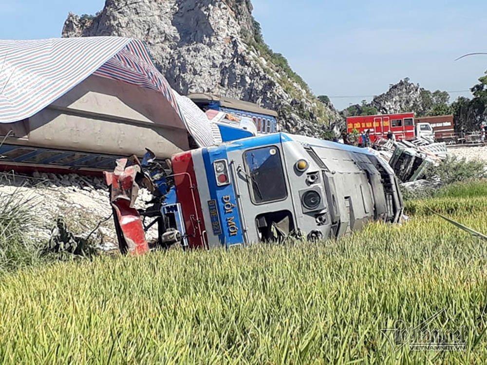 Trước đó, vào 0h30 sáng qua, đoàn tàu khách SE19 do đầu máy 927 kéo, chở theo 407 hành khách, khi đến đường ngang có gác tại Km 234+050, khu gian Khoa Trường - Trường Lâm, tuyến đường sắt Hà Nội - TP HCM (Trường Lâm, Tĩnh Gia,Thanh Hóa) đã va chạm với xe tải chở đá BKS 37C-15138.