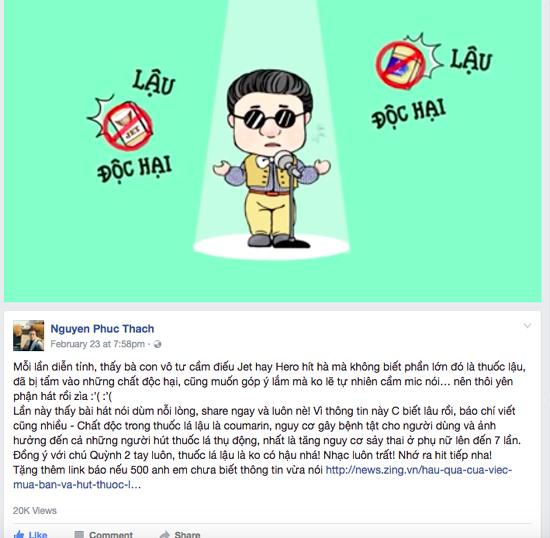 Trang Pháp cũng nhanh chóng bày tỏ: “Lâu lâu chuyển gout nhạc cho mới lạ. Thông tin mới và có ích nên share cho mọi người nghe - đừng dùng thuốc lá lậu vì bất cứ lý do gì nha!”.