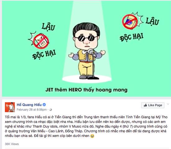Ca sĩ Hồ Quang Hiếu chia sẻ bài hát cho fans của mình