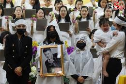 Lễ cầu siêu, viếng thăm diễn ra từ sáng 1/1, tại một ngôi chùa ở quận 10, TP HCM. Cô cũng nhắc đến chồng và con gái nhỏ mới hai tuổi khiến khán giả xót xa.