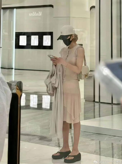 Triệu Lộ Tư xuất hiện với vẻ ngoài giản dị trong một chiếc váy sát nách màu be nhạt, chất vải voan mỏng mềm mại. Nữ diễn viên lựa chọn những phụ kiện đơn giản như mũ lưỡi trai, dép đế bánh mỳ và khẩu trang đen để giữ sự kín đáo khi xuất hiện nơi công cộng.