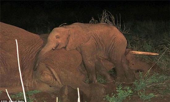 Hình ảnh một chú voi con 5 tháng tuổi dùng vòi vỗ về mẹ đang hấp hối tại Công viên quốc gia Nairabi đã khiến nhiều người phải xúc động.
