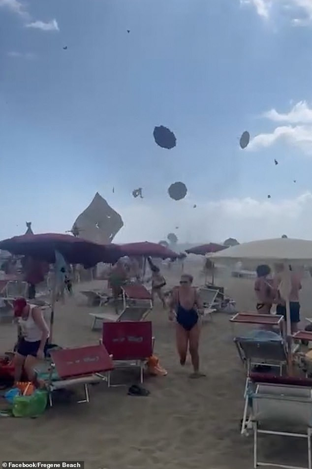 Sự việc xảy ra vào chiều ngày 3/8 vừa qua tại bãi biển Maccarese, nằm ở vùng ven biển phía bắc Rome. Đoạn clip được ghi lại cho thấy cơn lốc xoáy bất ngờ ập đến, cuốn bay nhiều ô dù cắm trên bãi cát, khiến hàng chục người đang tắm nắng trong trang phục đồ bơi phải hốt hoảng bỏ chạy.