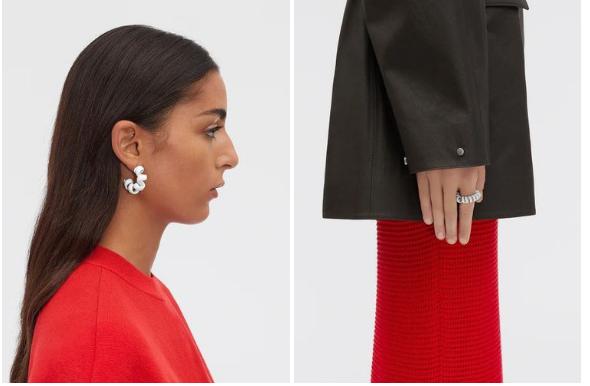 Bộ phụ kiện còn bao gồm hoa tai và nhẫn. Ảnh: Bottega Veneta.