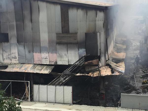 Theo quan sát của PV Báo Gia đình & Xã hội tại hiện trường, dãy ki-ốt bên ngoài chợ cứu được một phần, dãy ki-ốt giữa bị thiêu rụi hoàn toàn. Để cứu được hàng hóa cho các tiểu thương, lực lượng chức năng phải đập tường đưa hàng hóa ra ngoài.