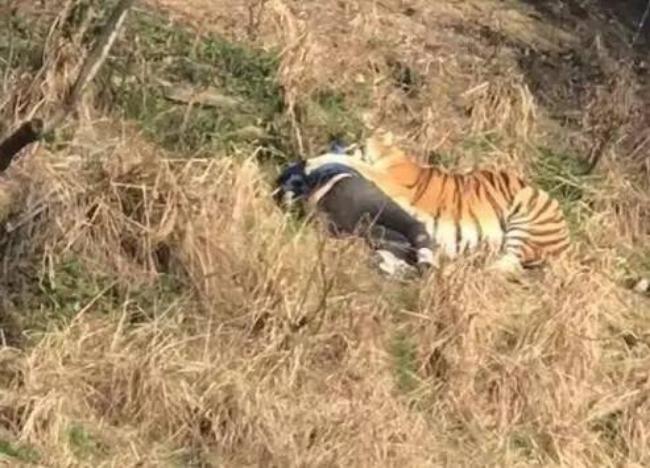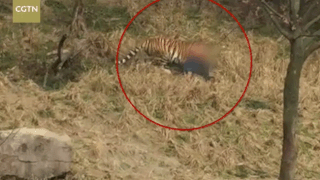Khoảnh khắc kinh hoàng khi người đàn ông xấu số bị hổ tấn công.