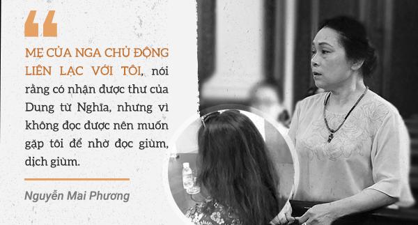 Bà Nguyễn Mai Phương nói mẹ của Phương Nga chủ động liên lạc với bà sau khi nhận được thư của Dung từ Nghĩa, muốn nhờ bà dịch thư bởi không đọc được.