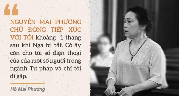 Trong khi đó, mẹ của bị cáo Nga phủ nhận những gì Nguyễn Mai Phương nói. Bà Hồ Mai Phương cho biết: "Nguyễn Mai Phương chủ động tiếp xúc với tôi khoảng một tháng sai khi Nga bị bắt. Cô ấy còn cho tôi số điện thoại của một số người trong ngành Tư pháp và chỉ tôi đi gặp".