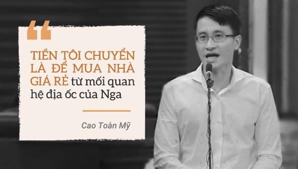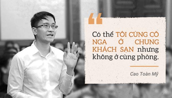 Phía ông Cao Toàn Mỹ thì luôn khẳng định mối quan hệ giữa ông và Nga chỉ dừng lại ở mức bạn bè. Trong những lần đi nước ngoài, có thể hai người ở chung khách sạn nhưng hoàn toàn không chung phòng. Trong khi bị cáo Nga khẳng định hai người ở chung phòng khi xuất ngoại.