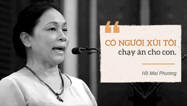 Phía mẹ bị cáo, bà Hồ Mai Phương một mực khẳng định con gái bà vô tội. Bà nói trong lúc HĐXX tạm nghỉ để hội ý: "Tôi biết con tôi bị oan từ lâu lắm rồi, có người còn dẫn dắt tôi hơn một năm rưỡi, cô ta xúi giục tôi chạy án cho con. Nhưng tôi biết đó là việc làm phạm pháp, nếu tôi vướng vào vòng lao lý nữa, ai sẽ là người cứu con tôi?"