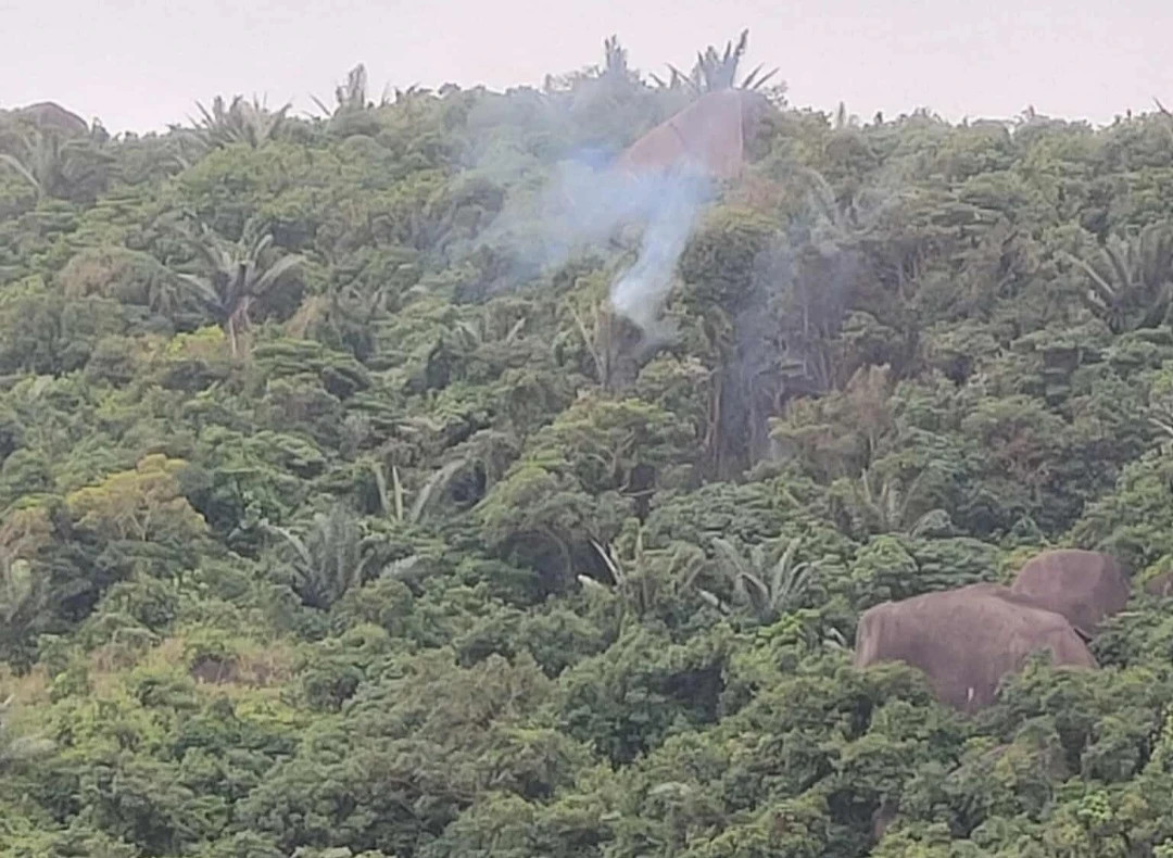 Khu vực máy bay rơi tại trên đỉnh núi tại phường Đông Hòa.