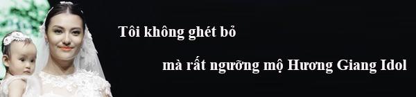 "Hiện tại tôi không ghét bỏ gì Hương Giang cả. Tôi vẫn dành ánh mắt rất ngưỡng mộ đối với Hương Giang bởi cô ấy là người chuyển giới đầu tiên ở Việt Nam tôi phải công nhận đẹp hơn cả phụ nữ, và khẳng định sự nỗ lực của Hương Giang rất nhiều.