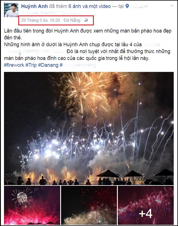 Huỳnh Anh đăng ảnh đi xem pháo hoa với cô gái lạ mặt ngày 29/5.