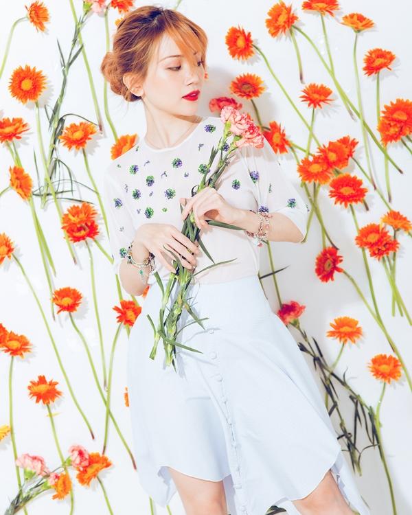 Việc mix & match các tông màu rực rỡ như hồng, cam cùng xanh hay đen... rất phù hợp với không khí đầu xuân. Nhưng không dừng ở đó, Sĩ Thanh còn khéo léo lựa chọn những chiếc áo giúp khoe vòng 1 gợi cảm, nóng bỏng vốn có của mình.