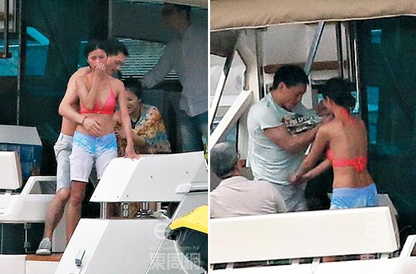 Trang Tư Minh cử chỉ thân thiết với một chàng trai trên du thuyền.