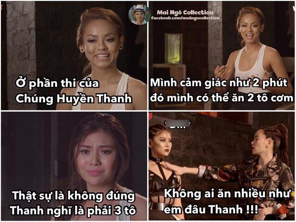 Khác với thường lệ, Chúng Huyền Thanh là đối tượng được cư dân mạng chế ảnh nhiều nhất tuần, thay vì Mai Ngô như những tập trước đó. Vẻ mũm mĩm, thừa cân của cô nàng đang trở thành nguồn ý tưởng phong phú để cư dân mạng sáng tạo nên những bức ảnh chế rất hài hước.