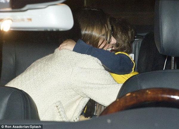 Sau buổi chụp hình, Miranda được nhìn thấy nhanh chóng trở về New York để đoàn tụ với con trai Flynn. Bé Flynn được bố Orlando trông nom trong vài ngày qua khi mẹ bận công việc. Có thể thấy khi gặp lại con Miranda rất xúc động, nhanh chóng ôm chầm và hôn thắm thiết cậu bé khi ngồi trên ô tô. Bé Flynn cũng không giấu nổi niểm vui khi được gặp lại mẹ. Bé choàng tay ôm cổ, hôn yêu mẹ và nở nụ cười rạng rỡ đáng yêu. Cả hai mẹ con vui cười suốt chặng đường trở về nhà .