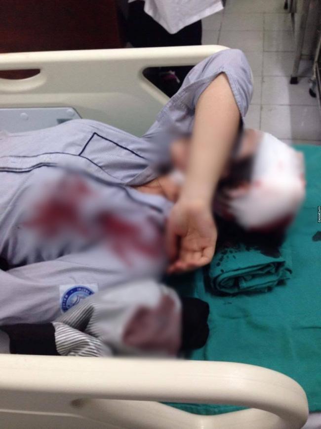 Em C. nhập viện trong tình trạng mất máu nhiều do bị bạn học cũ chặn đánh. Ảnh: Beat.vn