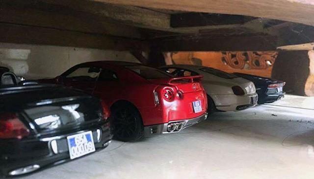 Dàn mô hình siêu xe được nam sinh cấp 2 đặt dưới gầm tủ, chụp ảnh đăng lên mạng. Ảnh chụp lại từ Facebook.