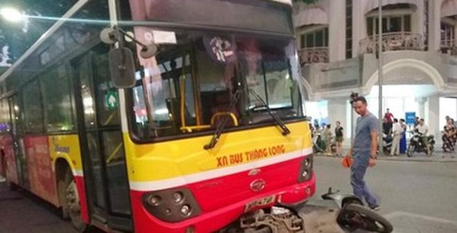 Sau đó xe buýt tiếp tục tông mạnh vào người phụ nữ đi xe máy phía trước, khiến chị này ngã ra đường tử vong.